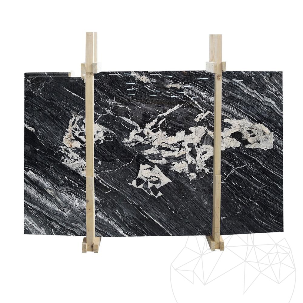 Black Galena Marble egy luxus természetes kő, amelyet mély fekete tónusai és finom fehér erezete jellemez, időtlen és kifinomult esztétikát teremtve. Ideális modern dizájnnal és klasszikus eleganciával ötvözött belső terekhez.