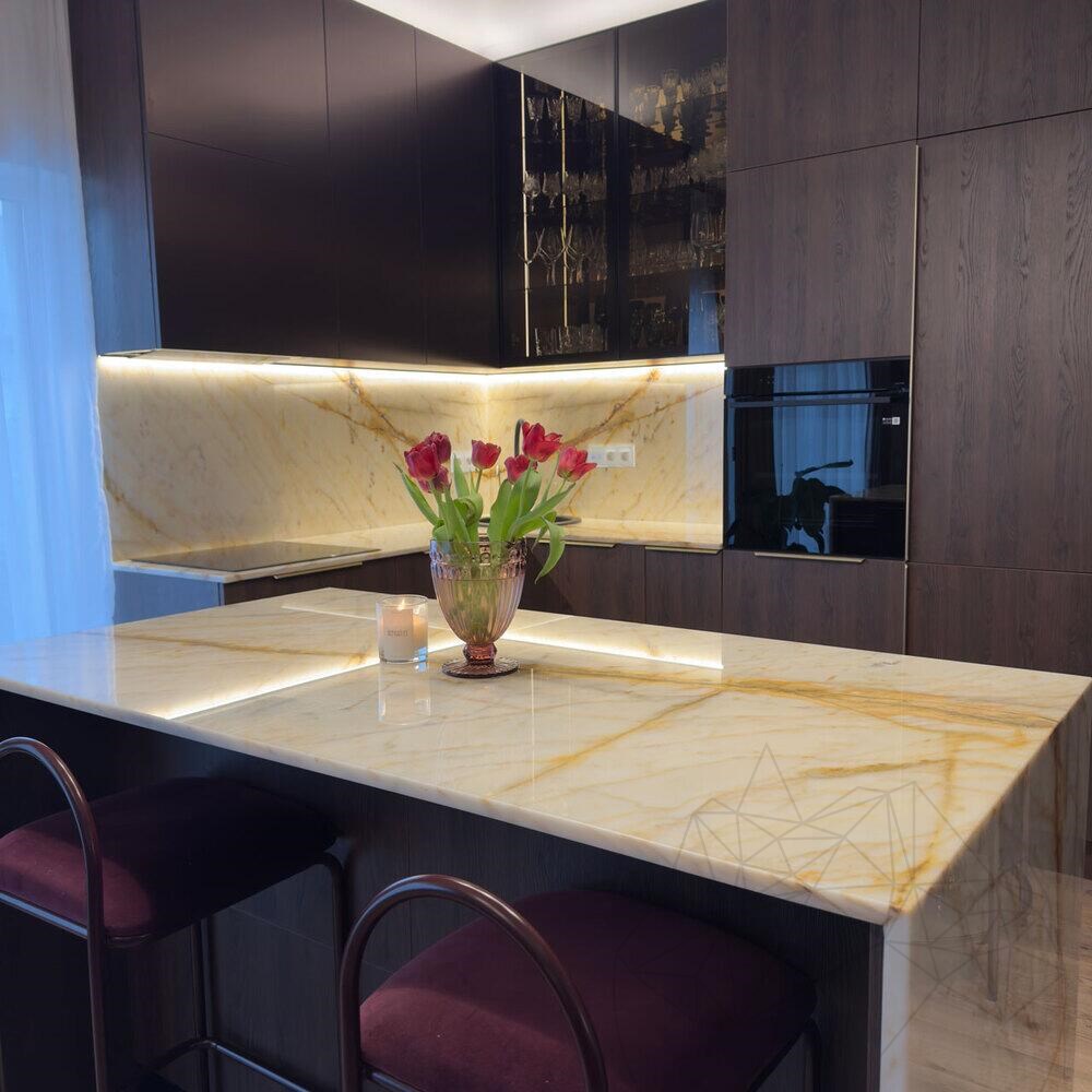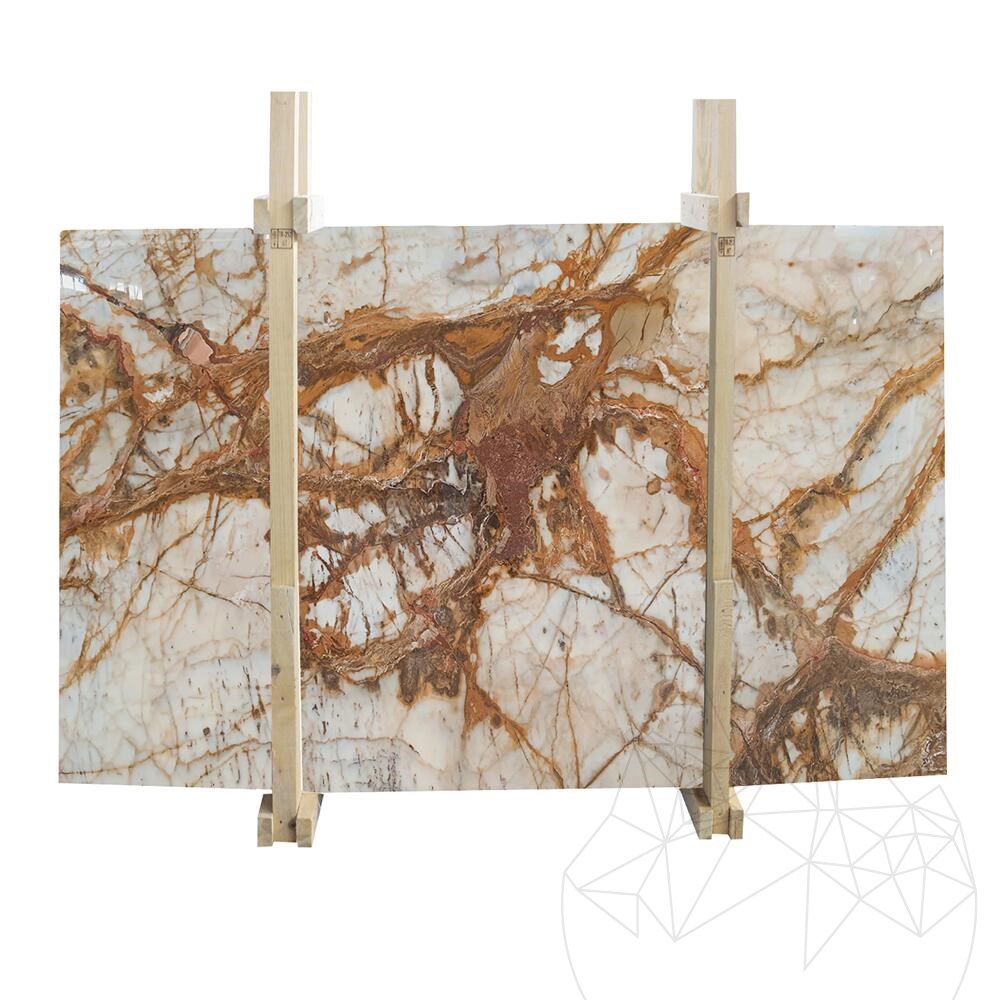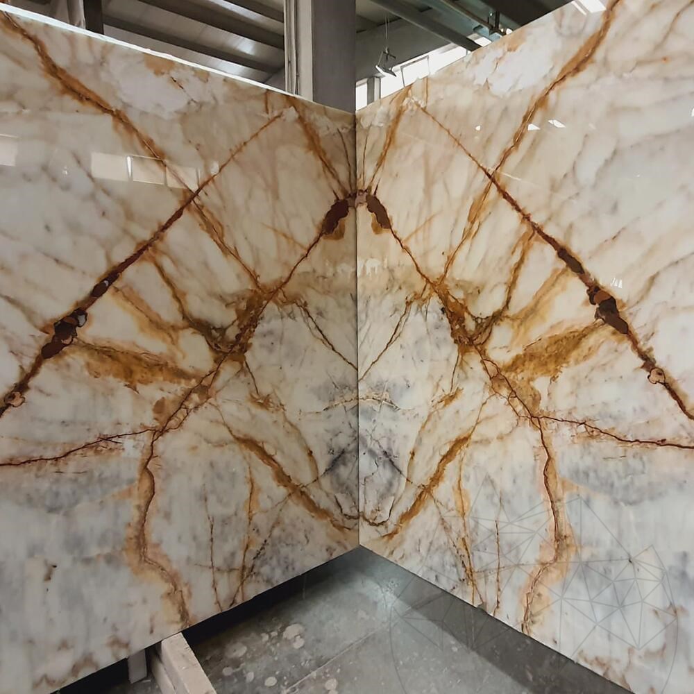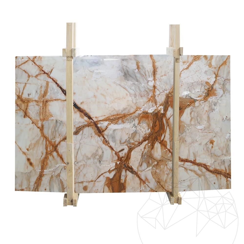 A Calacatta Gold márvány híres eleganciájáról és tartósságáról, így a magas színvonalú tervezési projektek kedvelt választása. Csiszolt felülete fokozza természetes szépségét, visszaveri a fényt, és kifinomultságot kölcsönöz bármilyen környezetnek.
