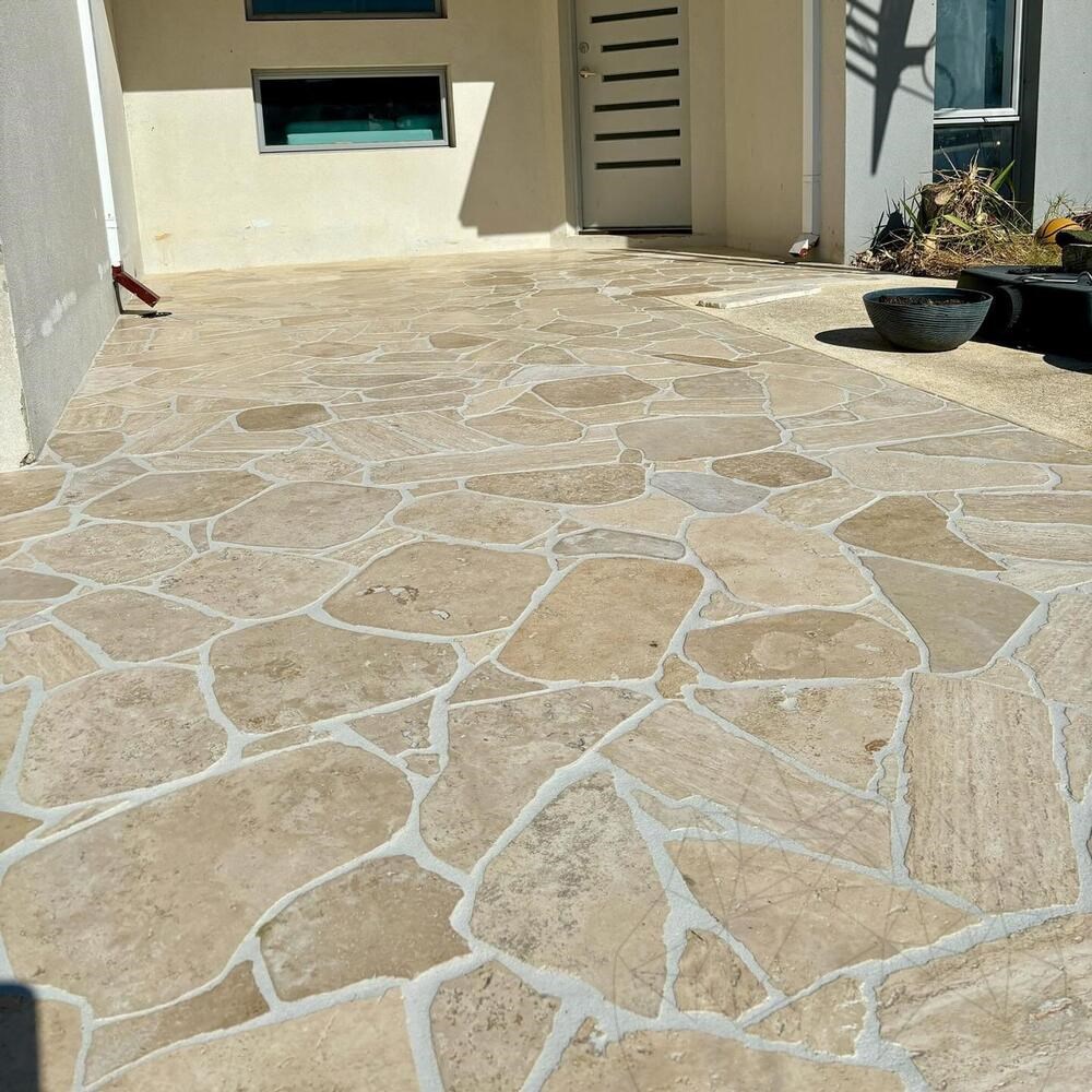 A Crazy Paving Classic Tumbled Travertin ideális választás azok számára, akik természetes és tartós megoldást keresnek, amely évekig megőrzi szépségét és eleganciáját a tervezési projektekben.